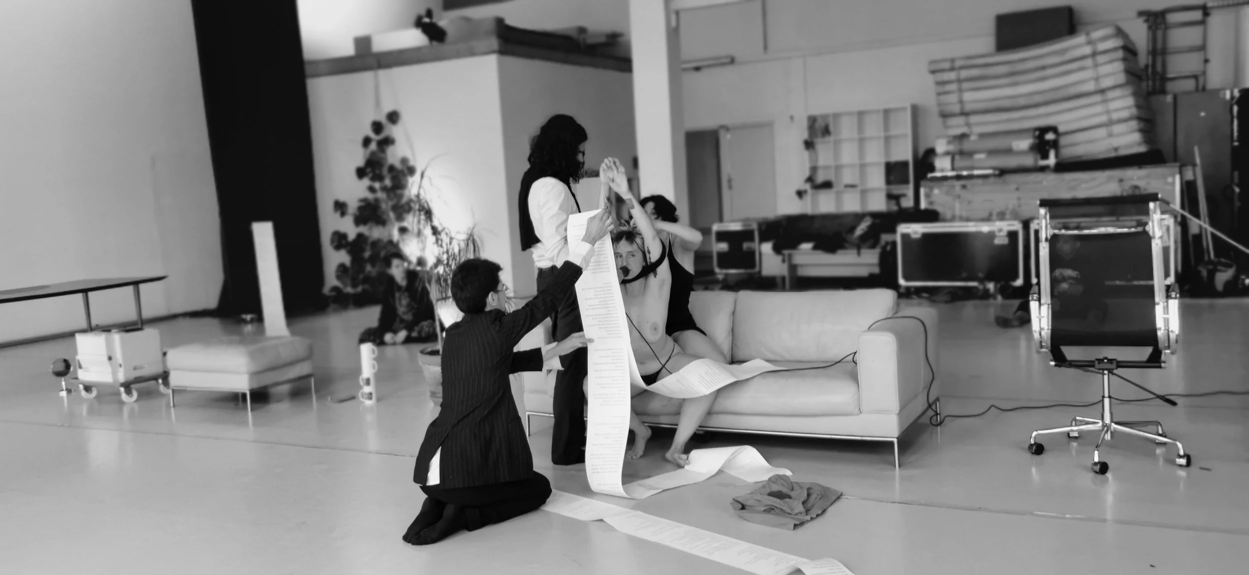 The collective p.o.l.e. (performative office of living expérimentations) is a process-based research and experimentation collective dealing with performance, visual arts, and curatorial practices based between Belgium, Germany, and France. Founded by Matilde Bassetti, Darius Dolatyari-Dolatdoust, Marcos Nacar, and Mallaury Scala in early 2024.